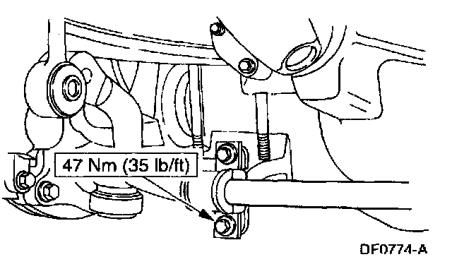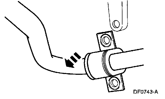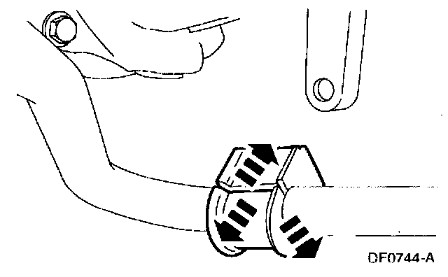 1. NOTE: Both the left and right side stabilizer bar bushings are removed and installed the same way. Only the left side is shown.