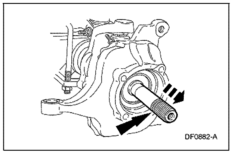 4. Using a drift, drive the axle shaft main seal out of the wheel knuckle.