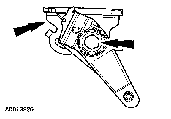 - For vehicles with a gasoline engine and manual transmission, or a diesel engine and manual or automatic transmission, position the pin in the rearward (RH) threaded hole in the transmission case.