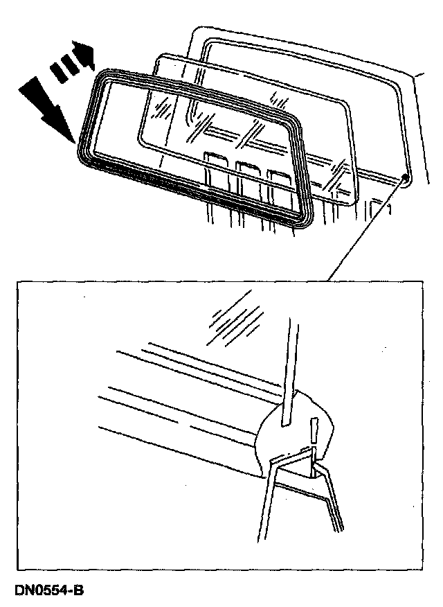 NOTE: Installation of the back glass window requires an assistant to push the back glass window as it is being installed.