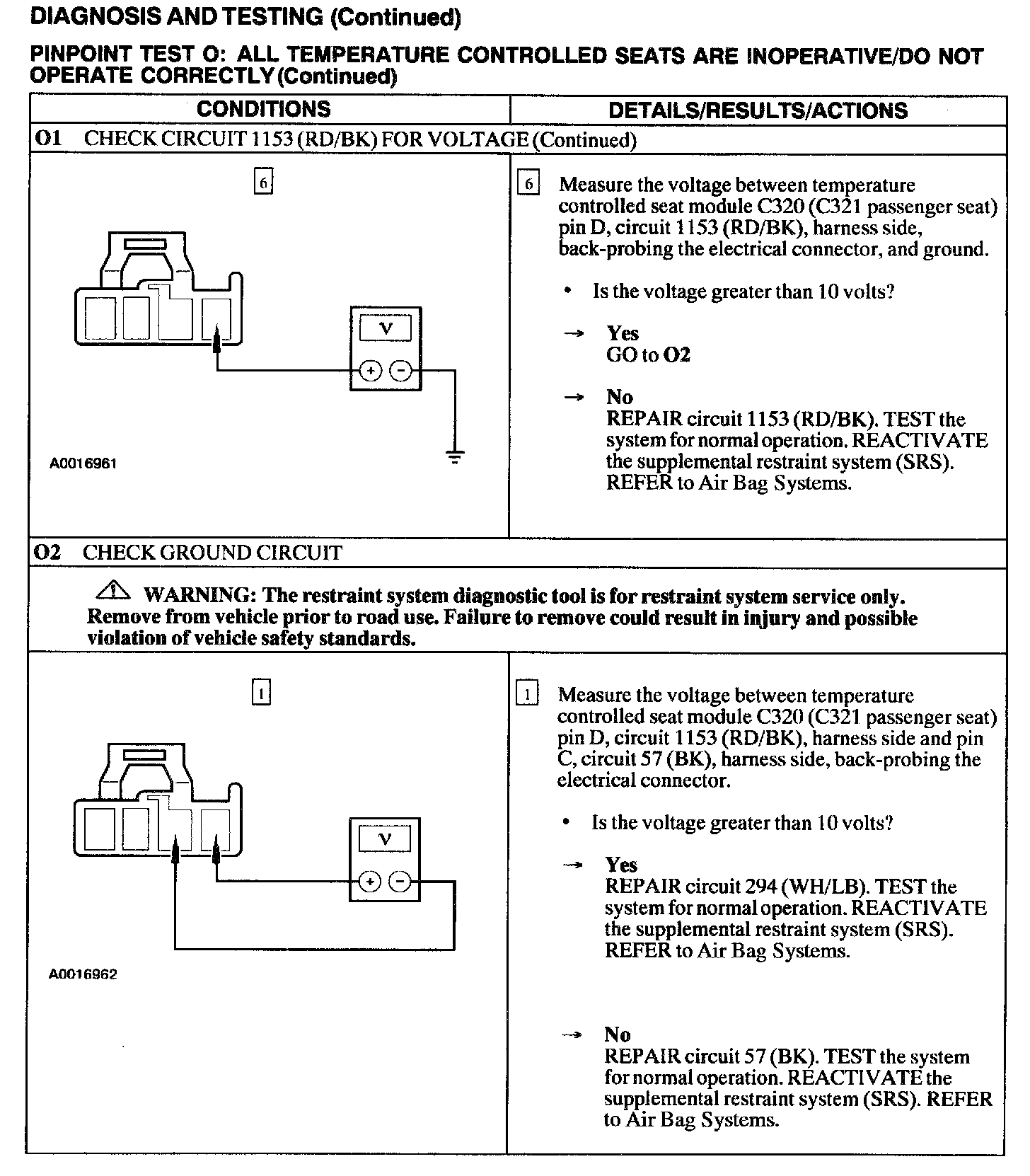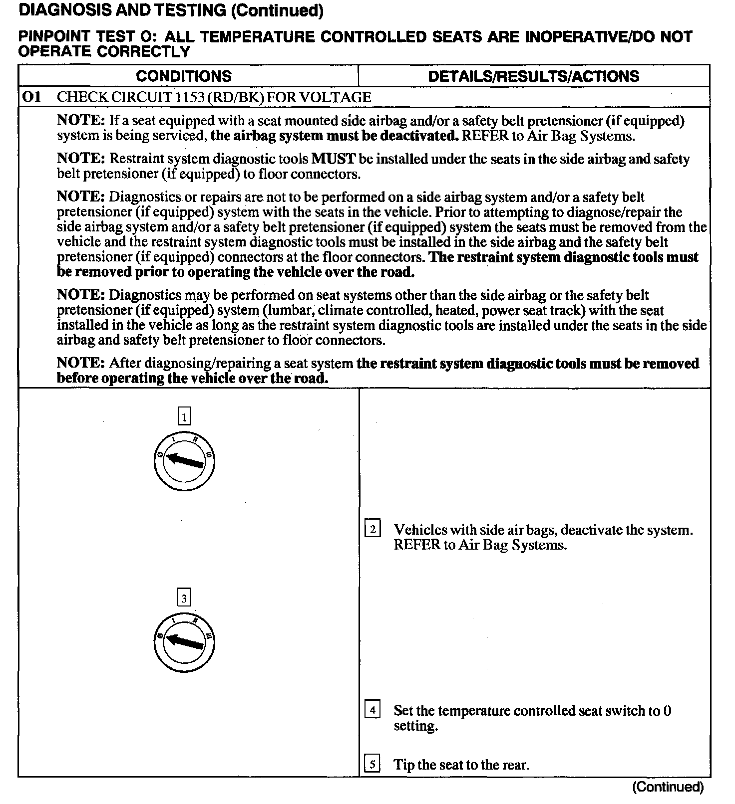 Test O: All Temperature Controlled Seats Are Inoperative/Do Not Operate Correctly