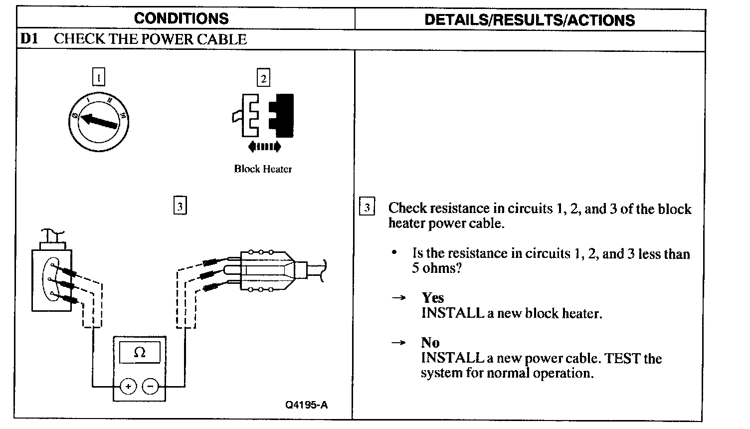 Test D: Block Heater Does Not Operate Properly