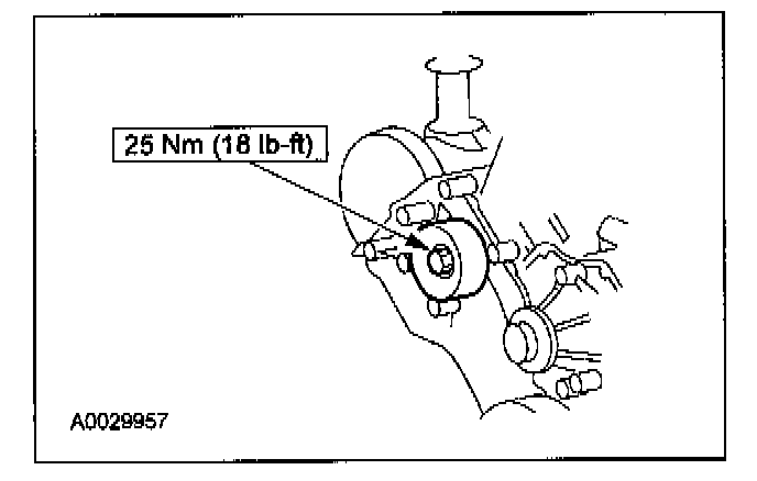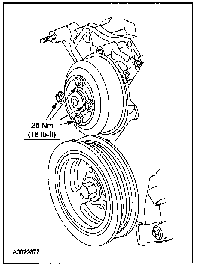 Tighten the new crankshafl pulley bolt in four stages.