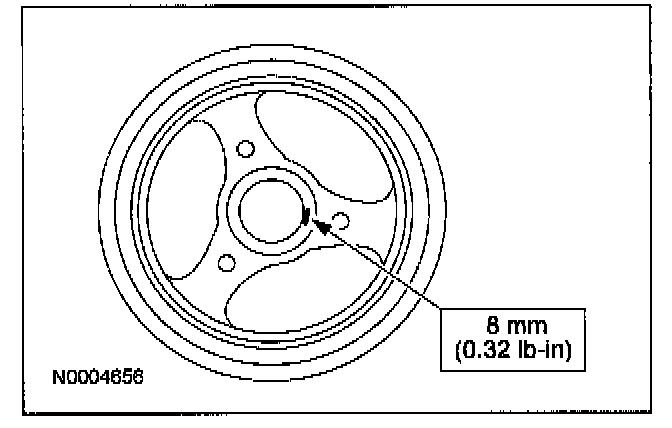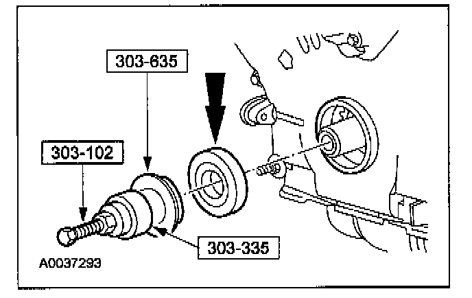 58. NOTE: Use a suitable strap wrench (303-D055) to hold the pulley while tightening the bolt.