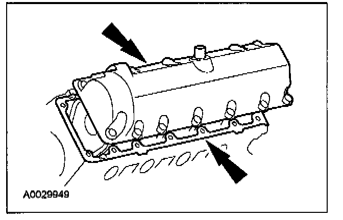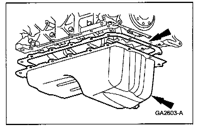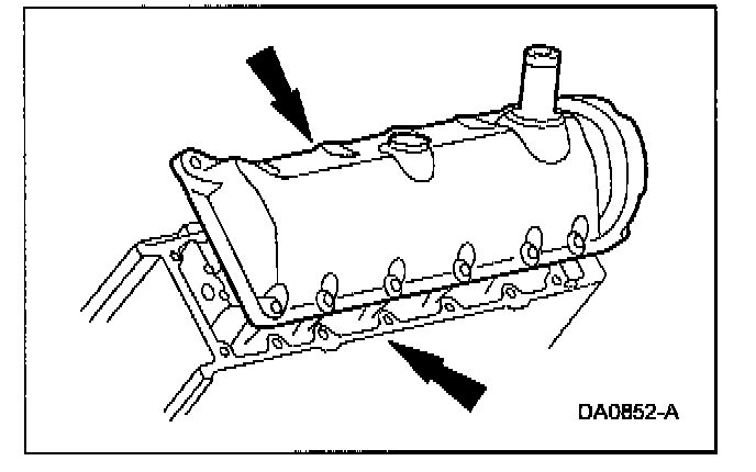 Apply a bead of silicone gasket and sealant along the cylinder head-to-cylinder block surface and the oil pan-to-cylinder block surface, at the locations shown.