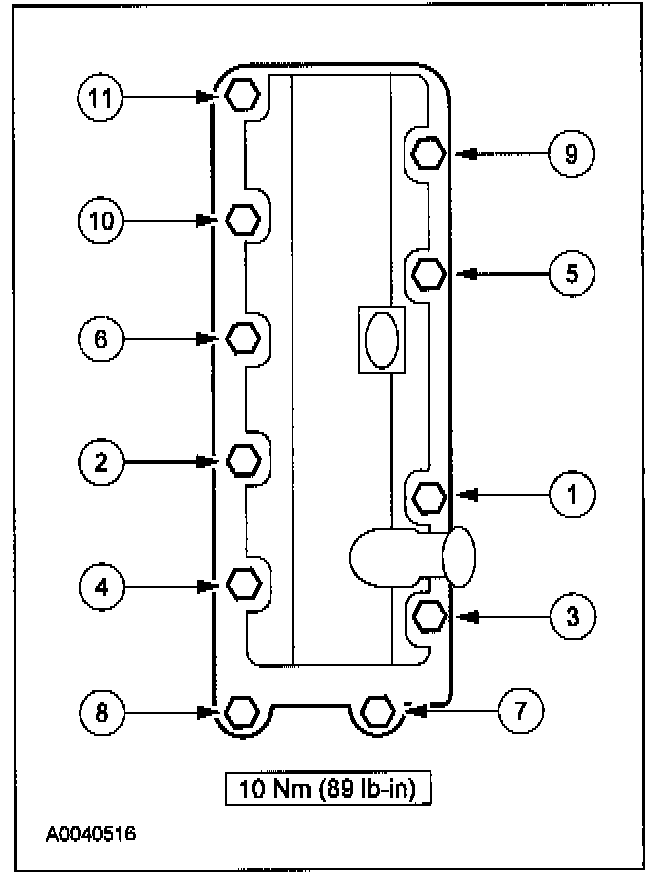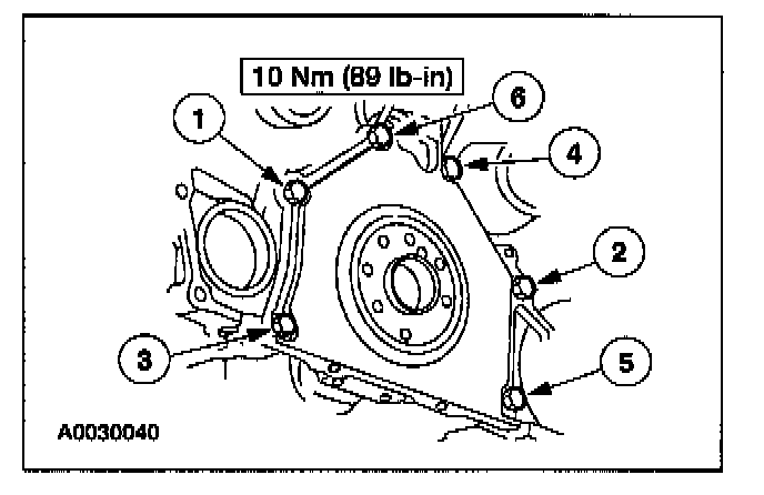 52. Tighten the front cover fasteners in the sequence shown to 25 Nm (18 lb-ft).