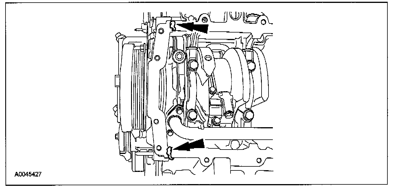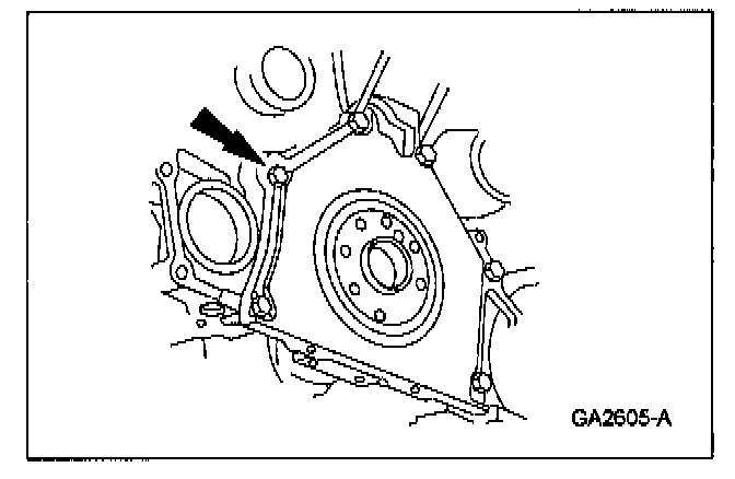 Apply silicone gasket and sealant at the engine front cover-to-cylinder block sealing surface.