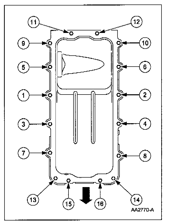 90. NOTE: If the oil pan is not secured within four minutes, the sealant must be removed and the sealing areas cleaned. To clean the sealing area, follow the directions provided on the packaging of the silicone gasket remover and the metal surface prep. Failure to follow this procedure can cause filture oil leakage.