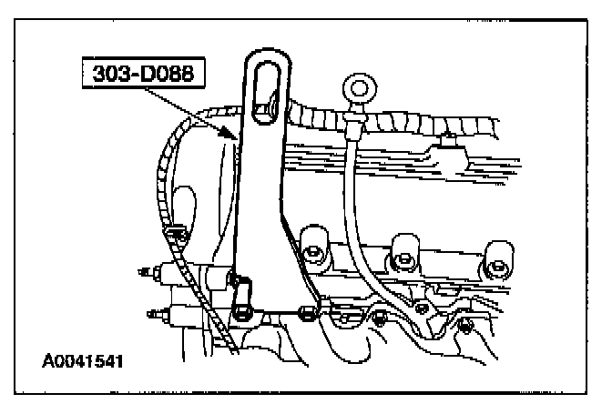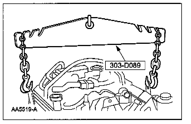 99. Install the special tool and raise the engine.