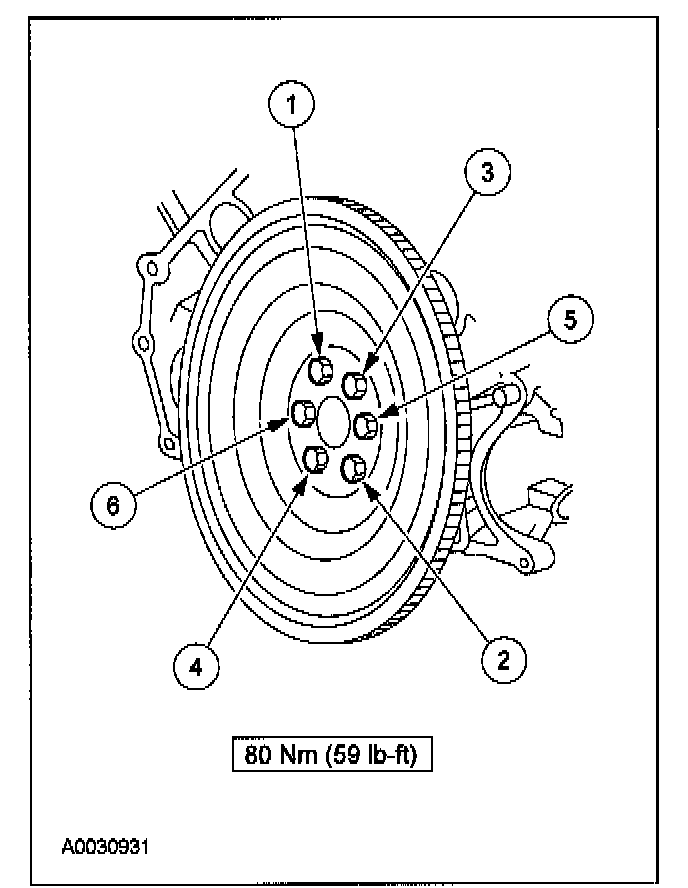 103. Install the flexplate or the flywheel and bolts. Tighten the bolts in the sequence shown.
