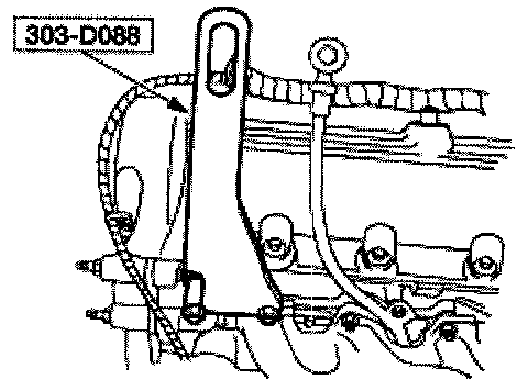 Caution: Use care when lowering the engine, to prevent damage to the oil pump screen and pickup tube.