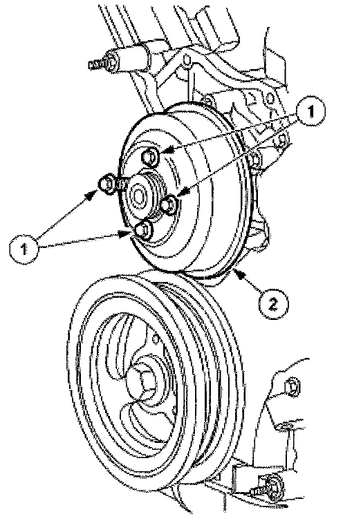 27. Remove and discard the crankshaft pulley bolt. Use the special tool to remove the crankshaft pulley.