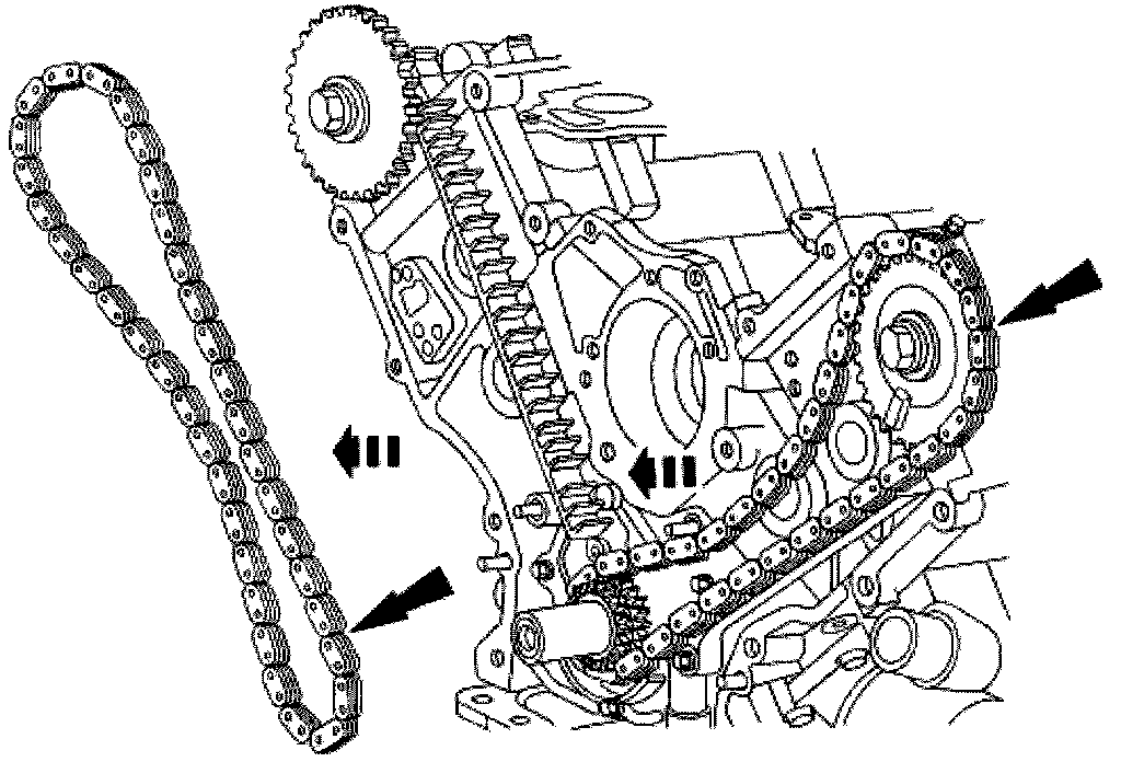 - Remove the LH timing chain and crankshaft sprocket(s).