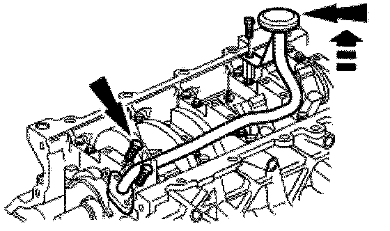 22. Remove the crankcase ventilation tube from the LH valve cover.