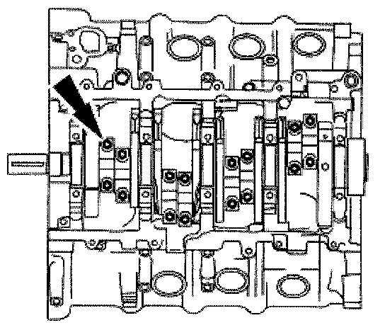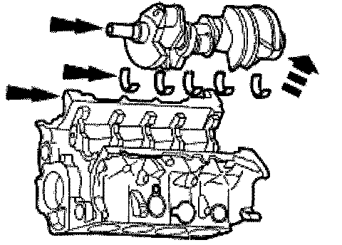 64. Remove the crankshaft, the upper crankshaft main bearings and the upper thrust washers from the cylinder block.
