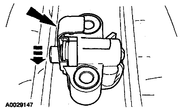 2. Install a retaining clip on the tensioner to hold the plunger in during installation.