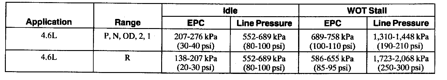 5. Start engine and check EPC pressure. Use the line pressure chart for specifications.