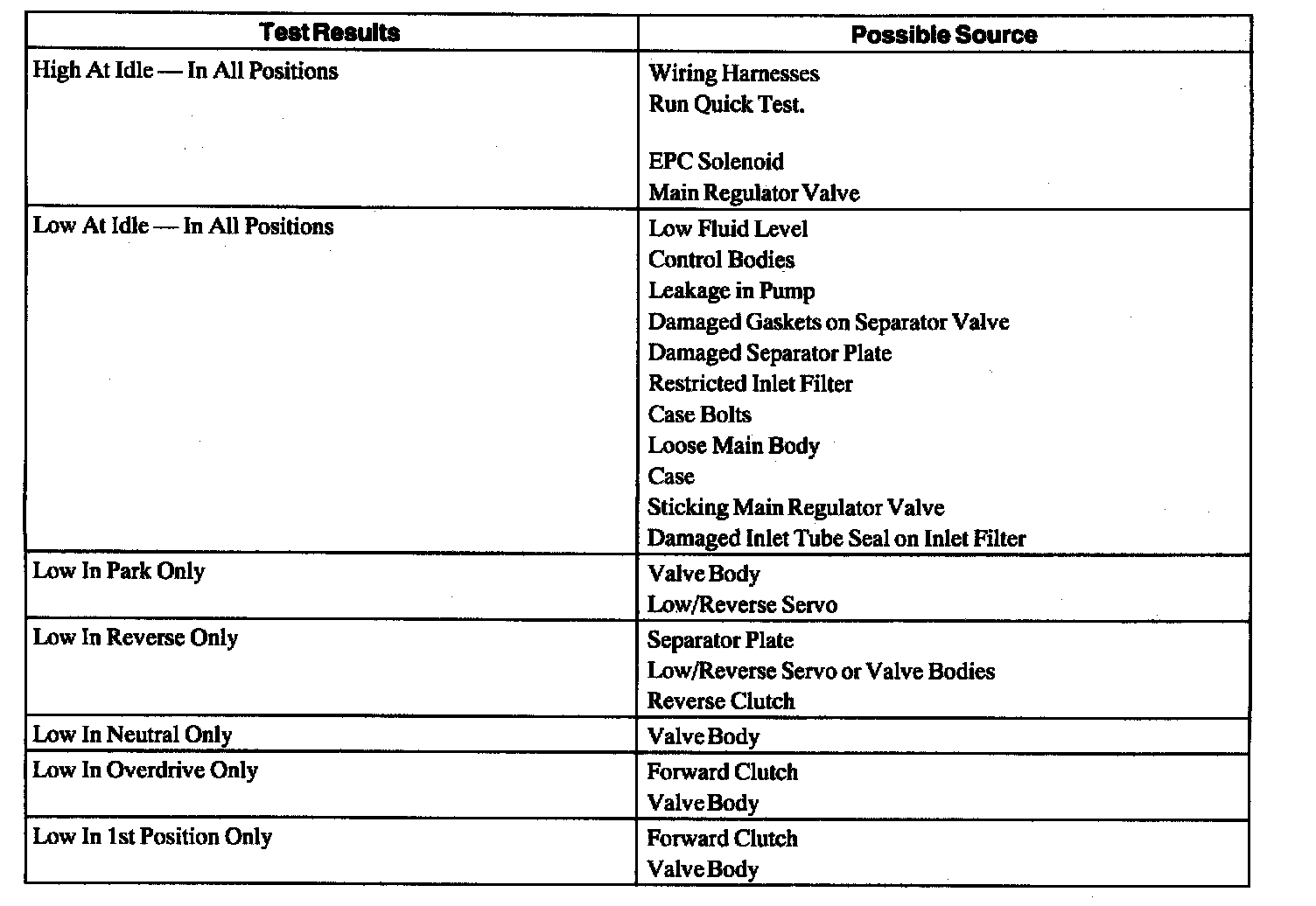 2. Start engine and check line pressures. Refer to the Line Pressure Chart to determine if line pressure is within specification.