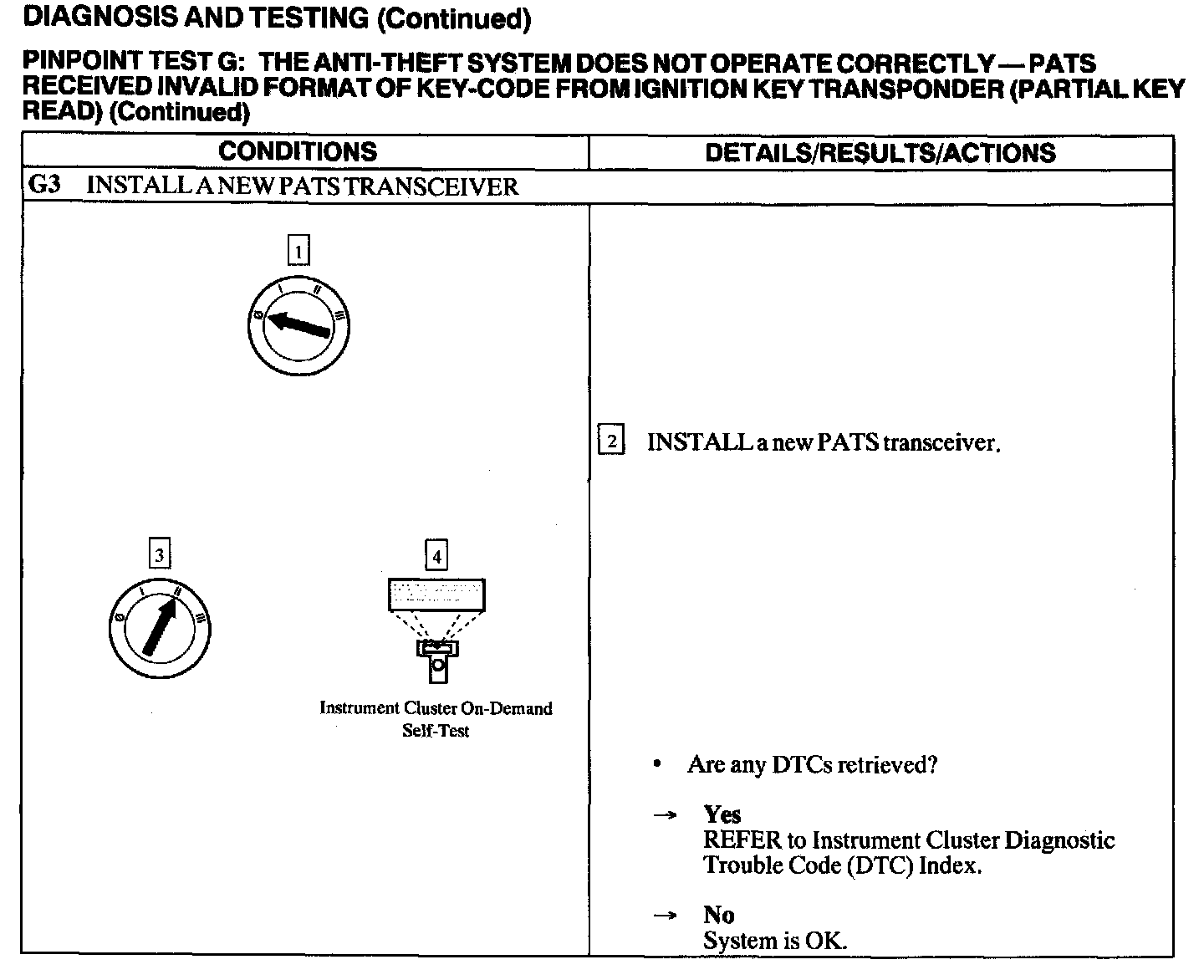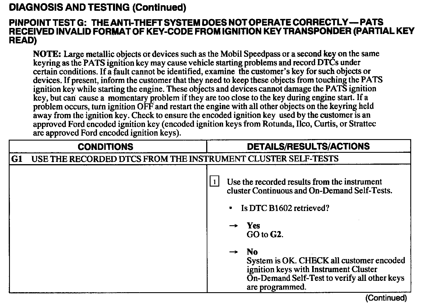 G: System Operates Inorrectly-PATS Received Invalid Format Of Key-Code From Ignition Key Transponder (Partial Read)