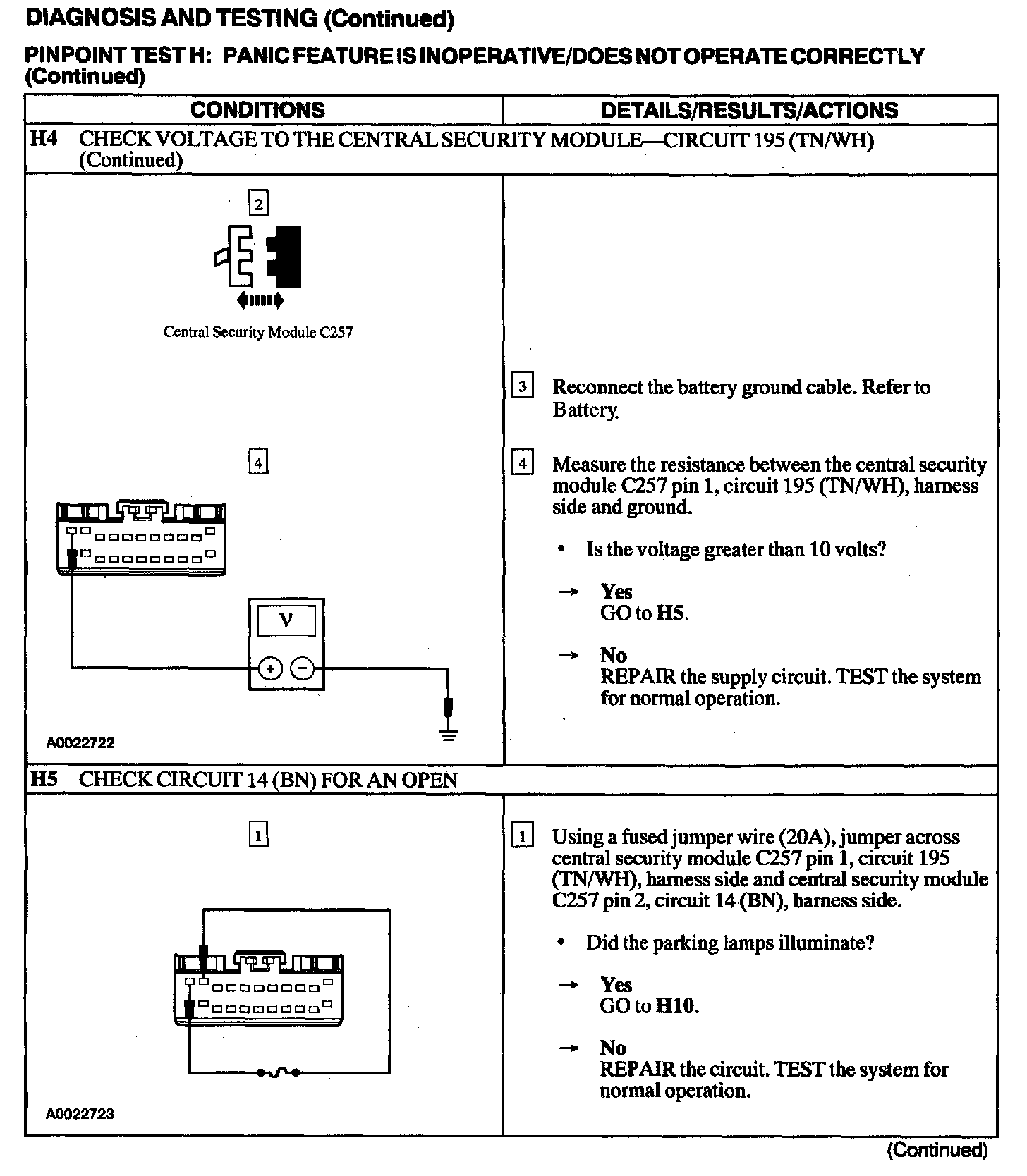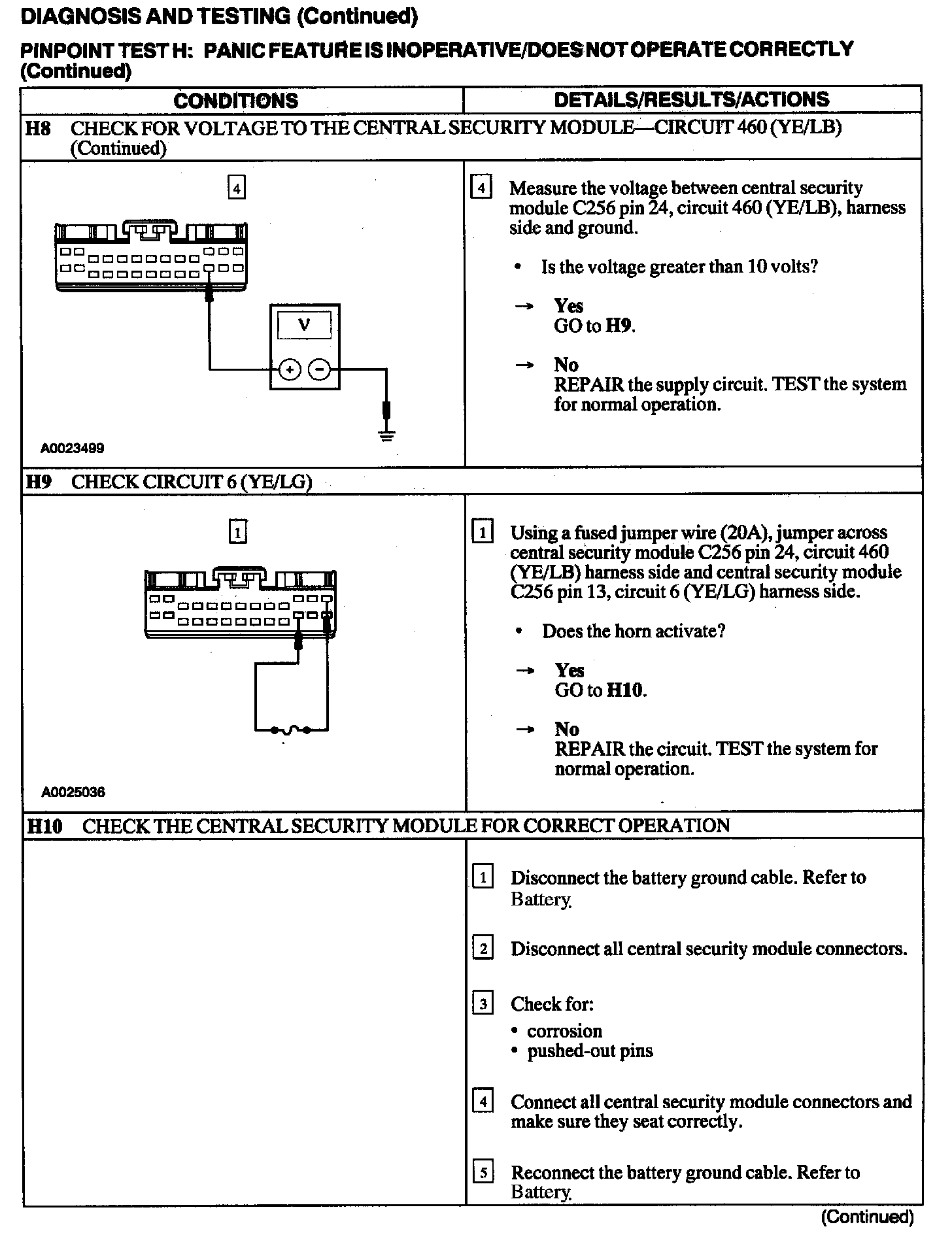 Test H: Panic Feature Is Inoperative/Does Not Operate Correctly