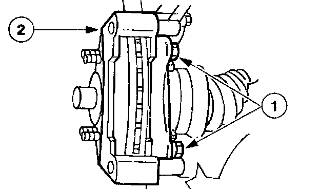 1 Remove the two front disc brake caliper anchor plate bolts.