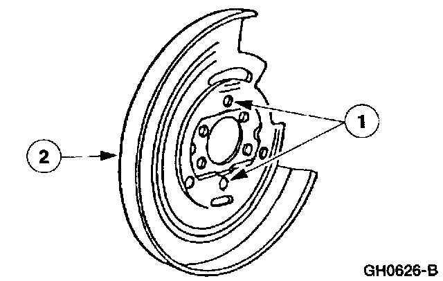 1. NOTE: Because the rear wheel disc brake shield is held in position by the four rear wheel disc brake adapter bolts, new rivets are not required.