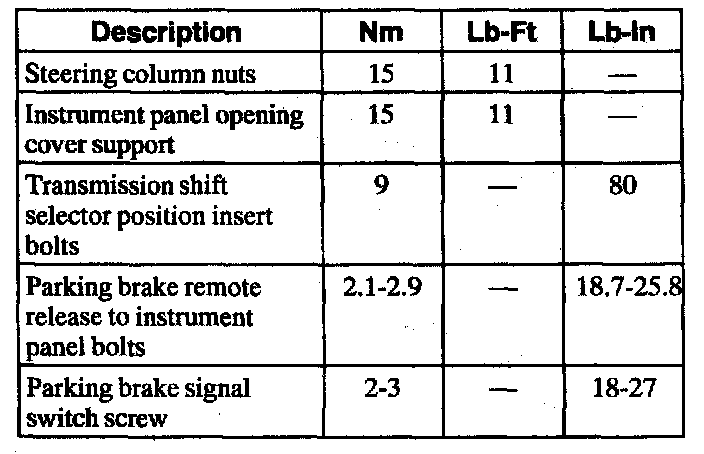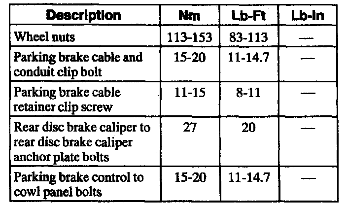 Parking Brake System: Specifications