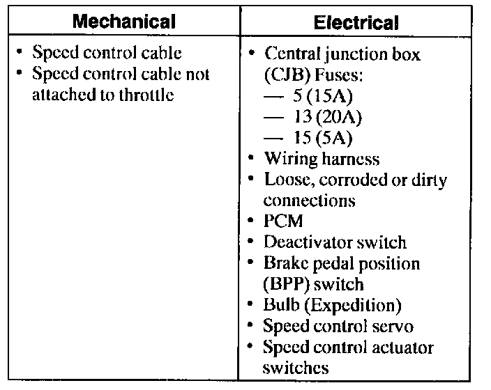 NOTE: If any concerns are noted with the speedometer, stoplamps or horn, address those concerns by referring to their associated sections before continuing speed control diagnosis.1. Verify the customer concern by operating the speed control system.