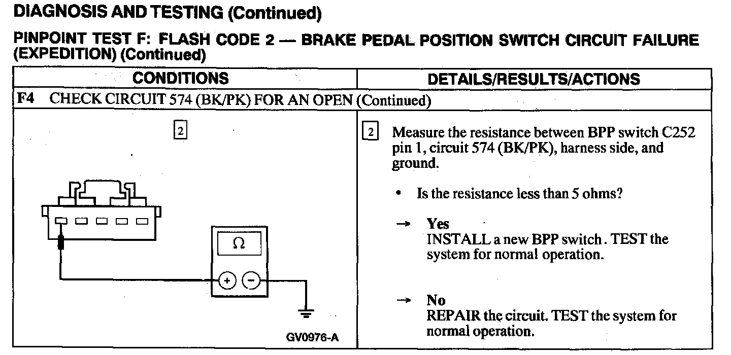 Test F: Flash Code 2 - Brake Pedal Position Switch Circuit Failure
