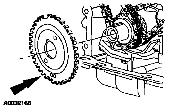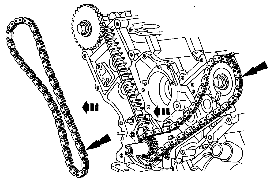 ^ Remove the RH timing chain and from the crankshaft sprocket.