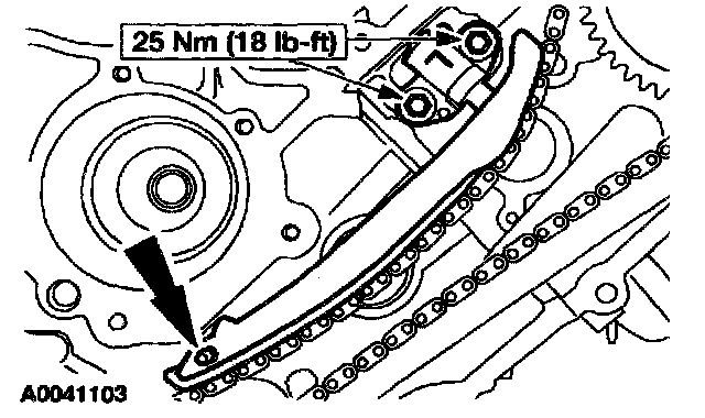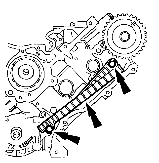 12. NOTE: Make sure the upper half of the timing chain is below the tensioner arm dowel.
