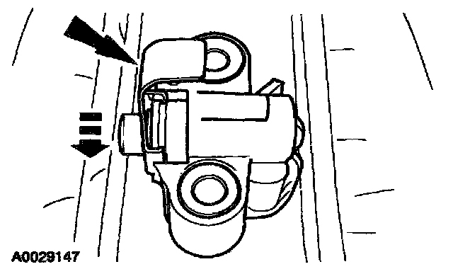 2. Install a retaining clip on the tensioner to hold the plunger in during installation.