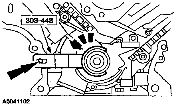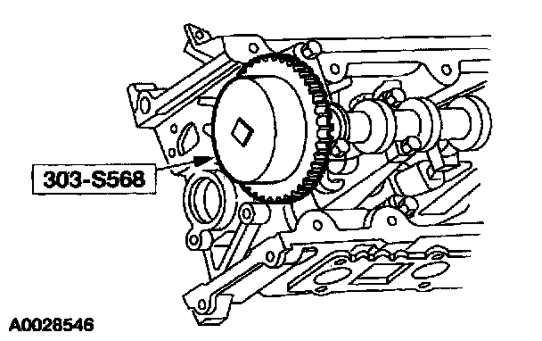 7. NOTE: Slightly loosen the camshaft holding tools to allow slight camshaft movement.