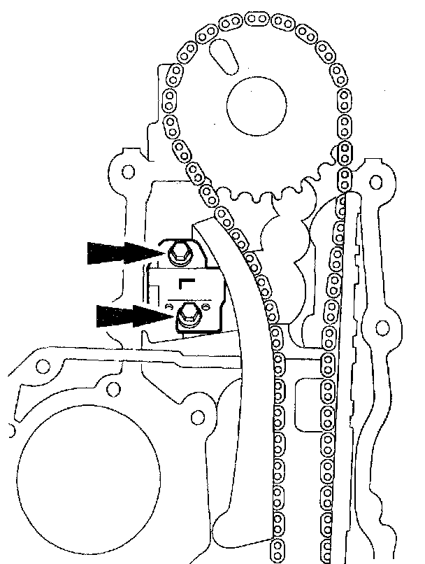 5. Remove the bolts and the LH timing chain tensioner.