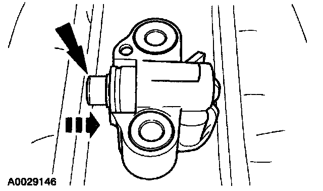 2. Install a retaining clip on the tensioner to hold the plunger in during installation.