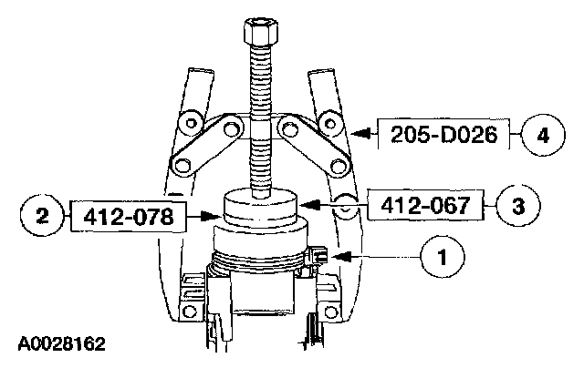 4 Use the special tool to install the A/C clutch field coil until bottomed completely against the A/C compressor.
