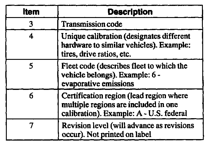 NOTE: Powertrain calibration information is limited to a maximum of five characters per line on the Vehicle Certification (VC) Label. Because of this, calibration identification consisting of more than five characters will wrap to the second line on the VC label.