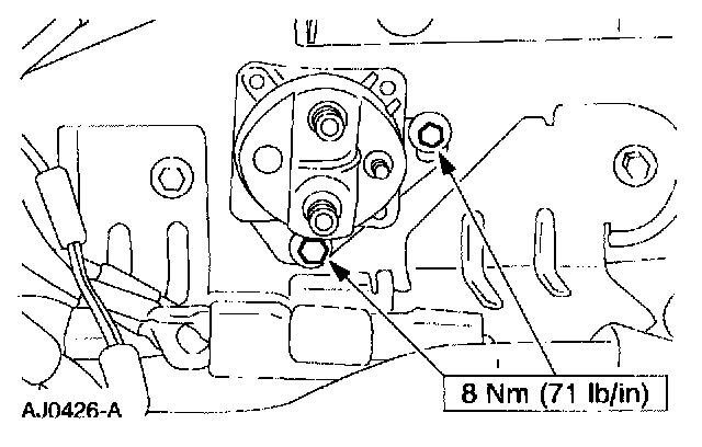 ^ Remove the starter motor solenoid relay switch terminal nuts.