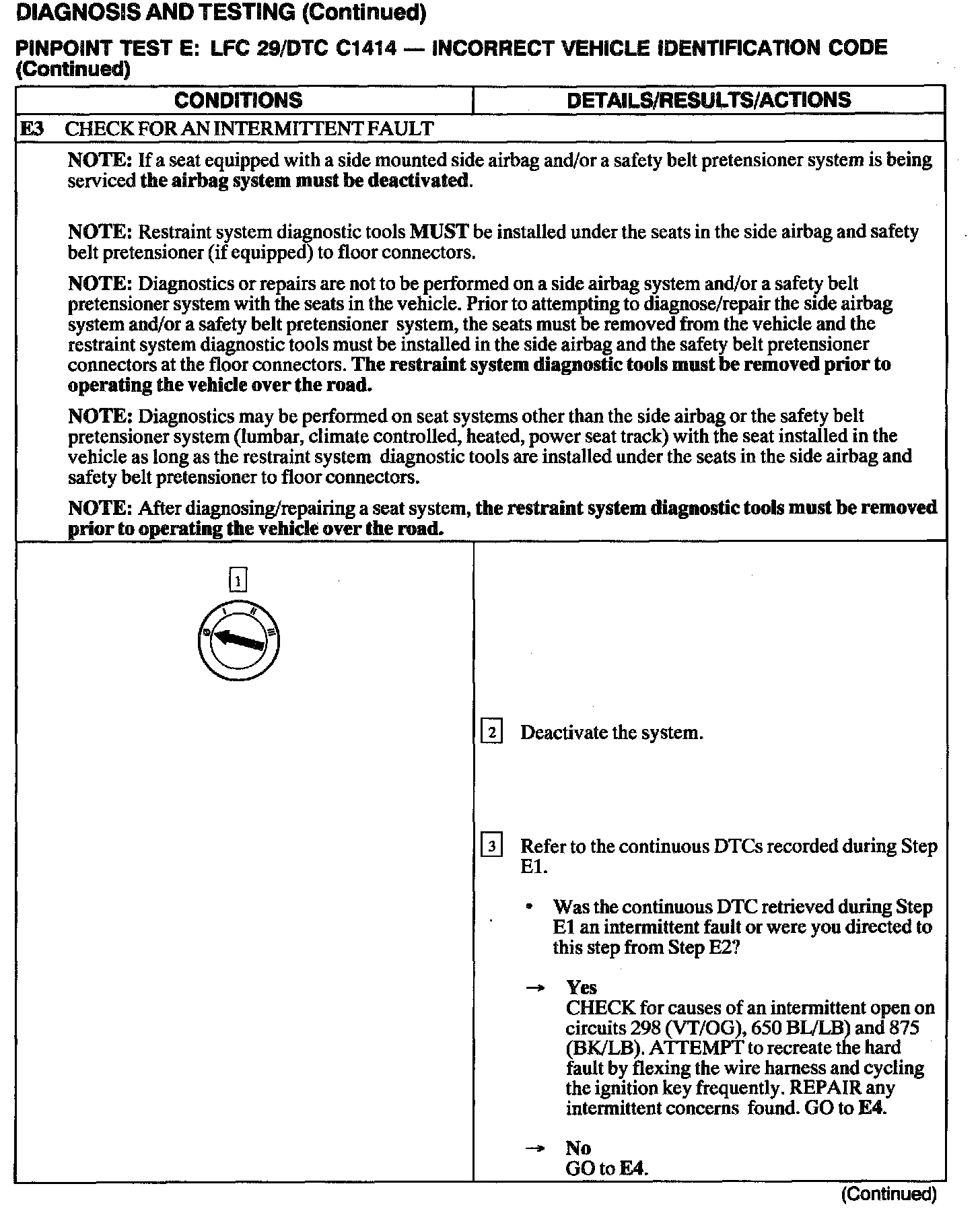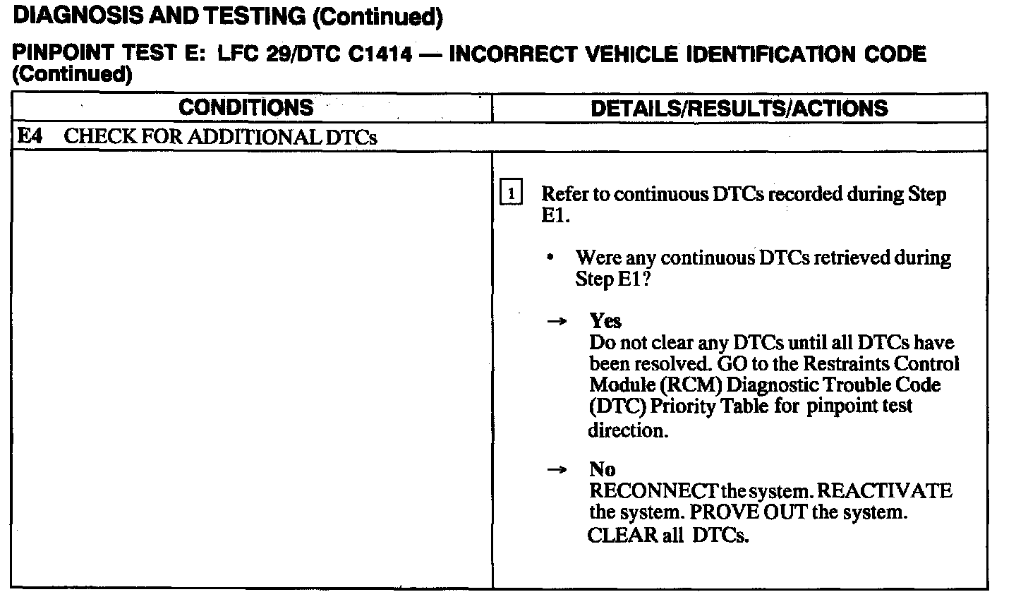 Test E: LFC 29/DTC C1414- Incorrect Vehicle Identification Code