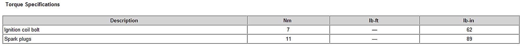 Spark Plug Torque