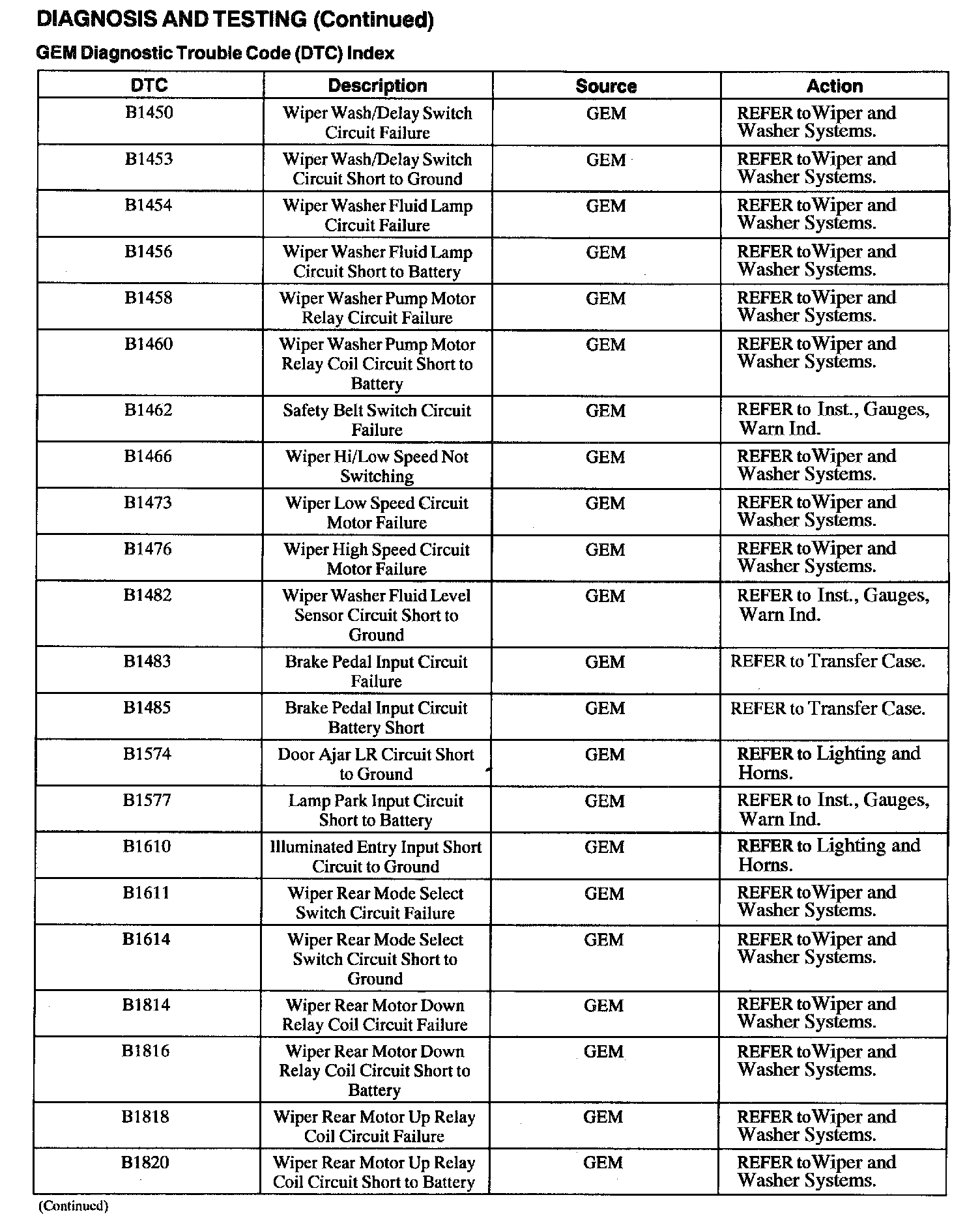 DTC Index B1450 - B1820: