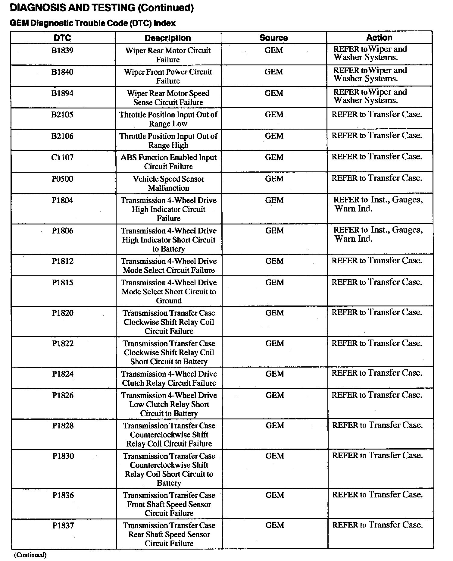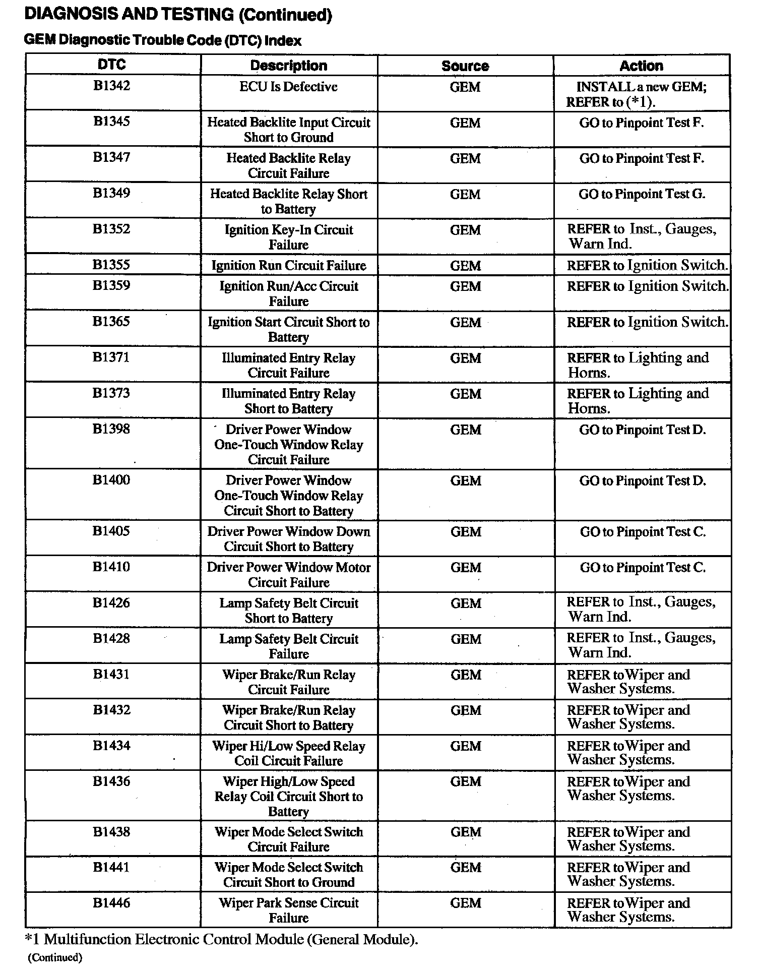 DTC Index B1342 - B1446: