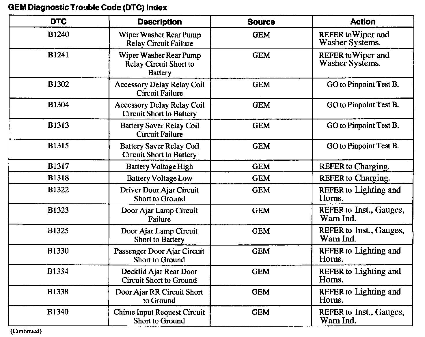 DTC Index B1240 - B1340: