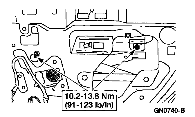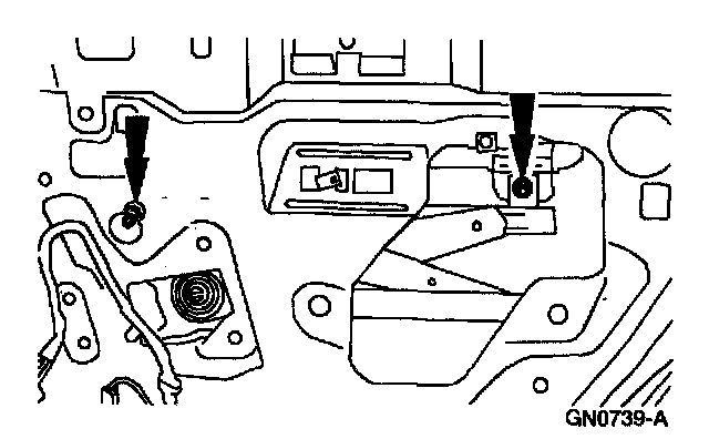 6. Remove the window glass to regulator nuts.
