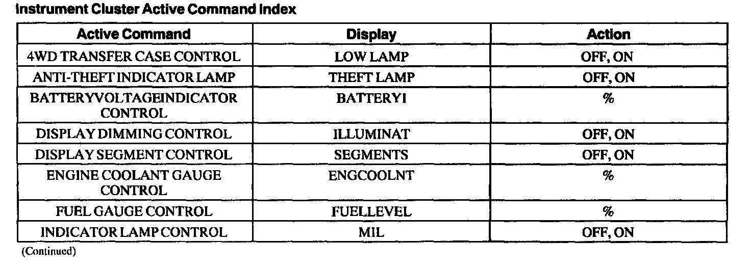 Instrument Cluster Active Command Index, Part 2: