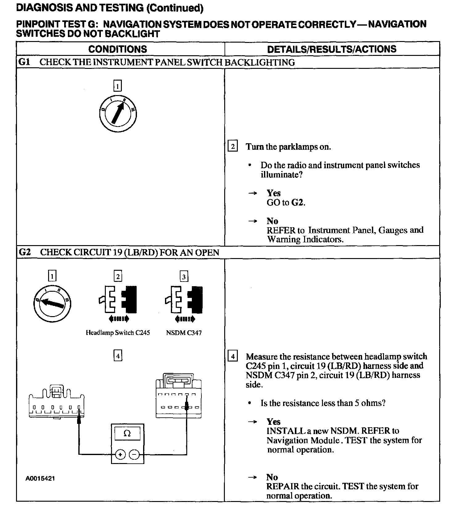 Test G: Navigation Sys Not Operate Correctly Switches Dont Backlight