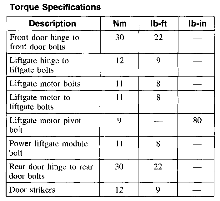 Torque Specifications:
