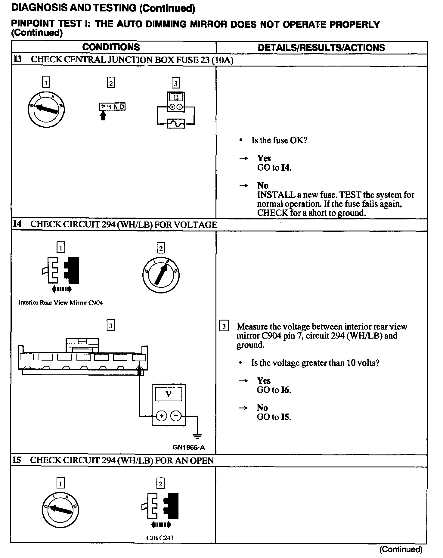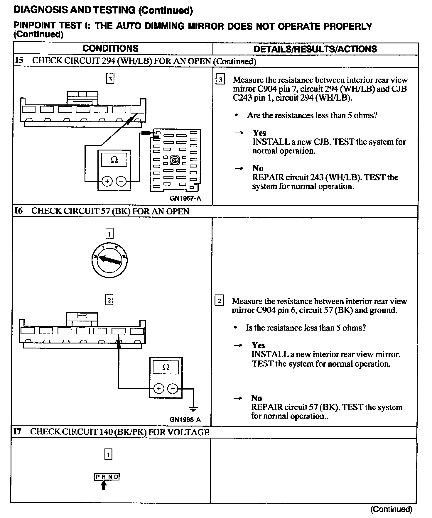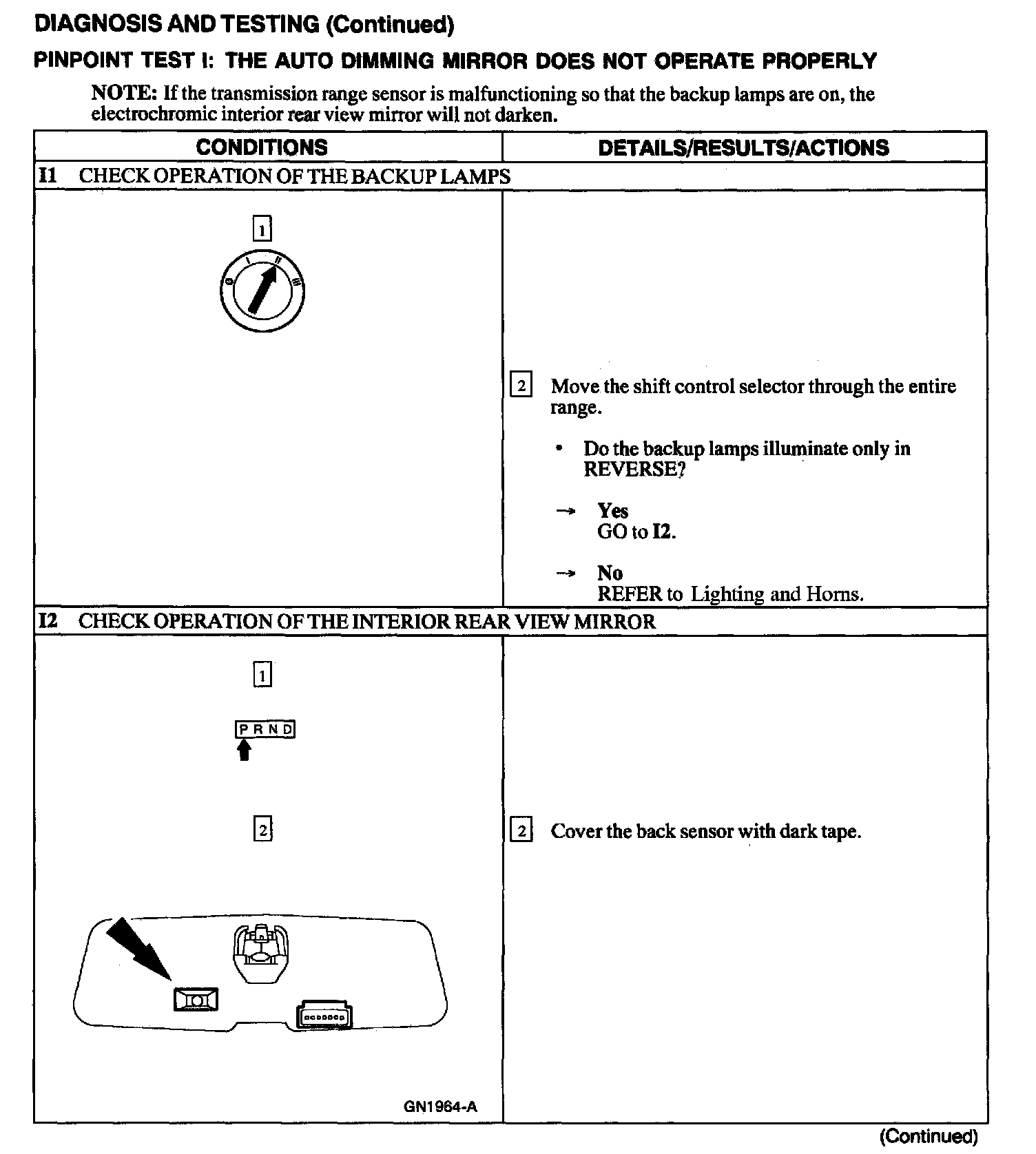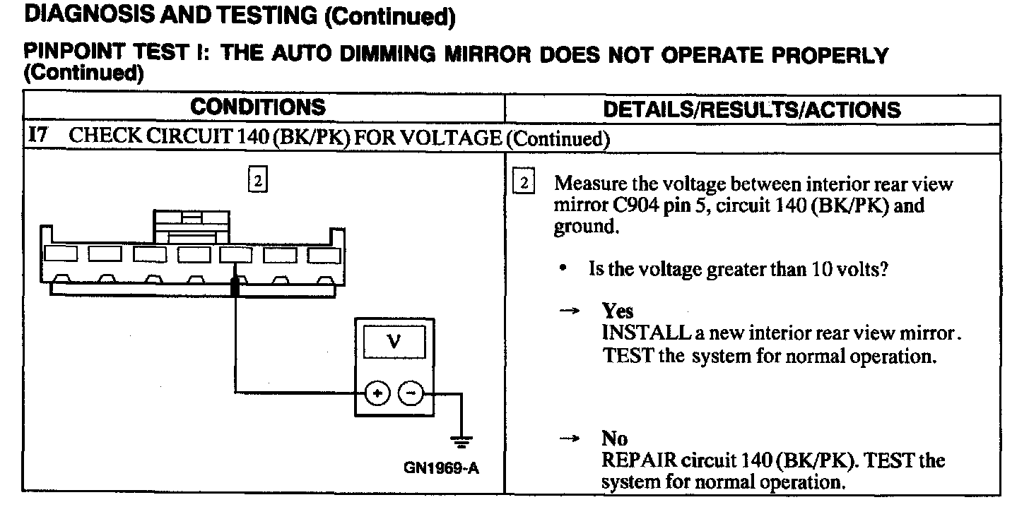 Test I: Auto Dimming Mirror Does Not Operate Properly