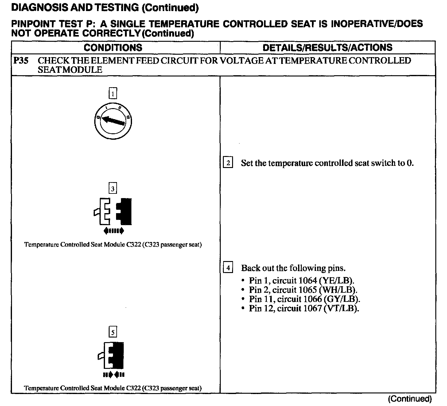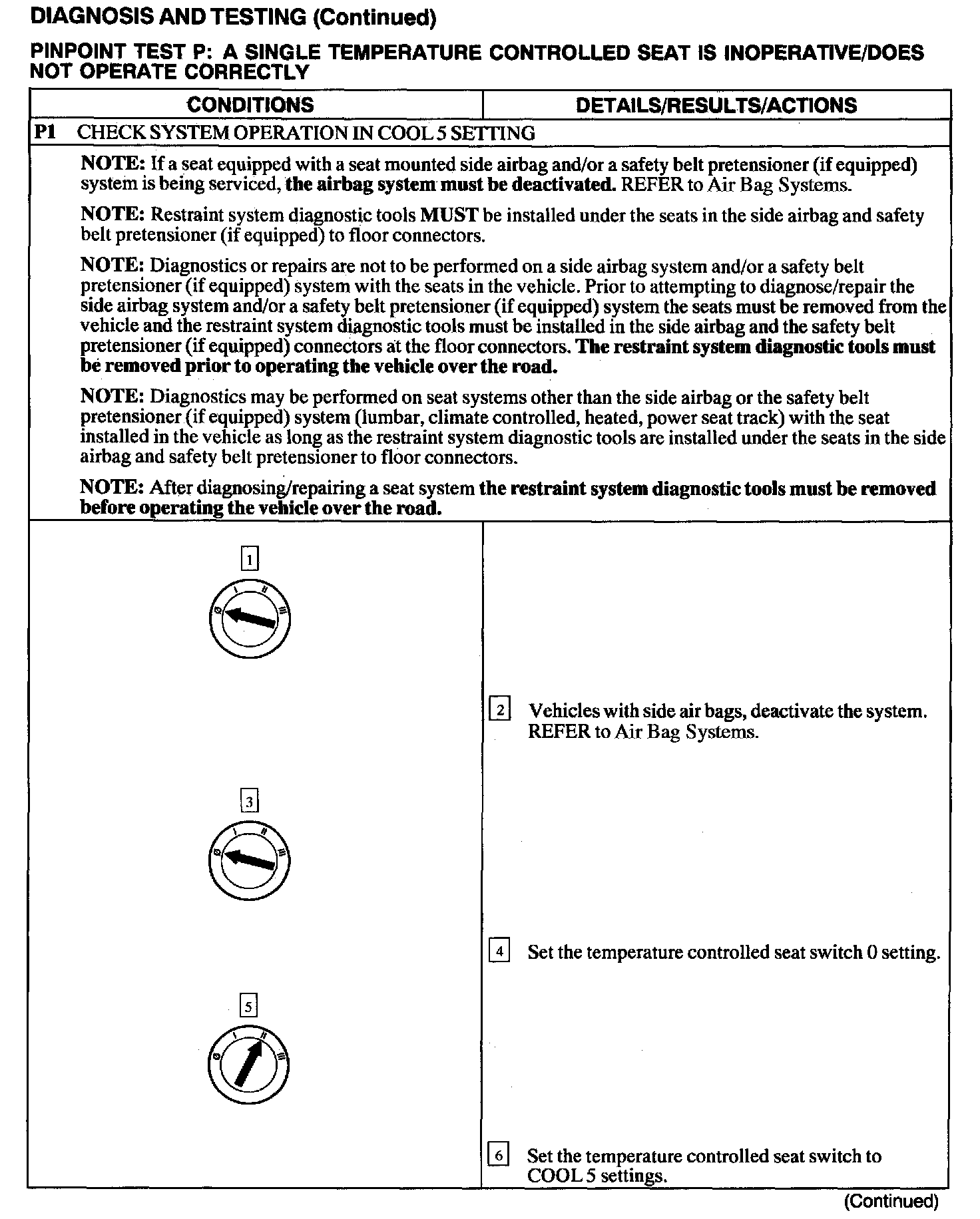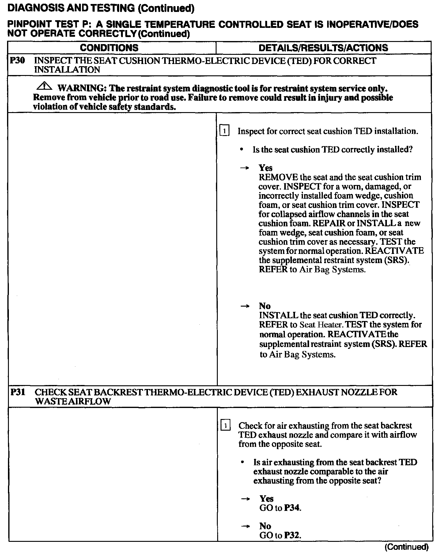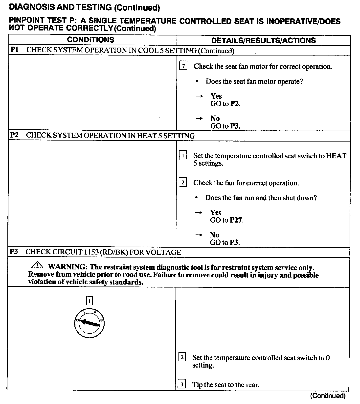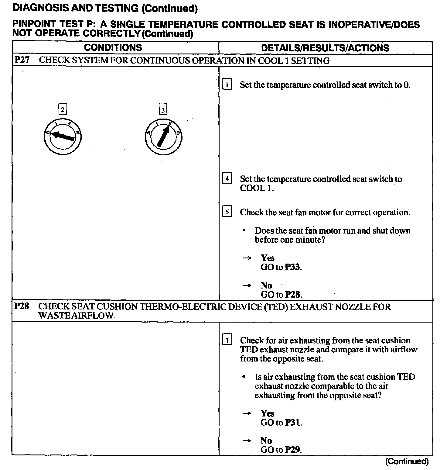 Test P: A Single Temperature Controlled Seat Is Inoperative/Does Not Operate Correctly