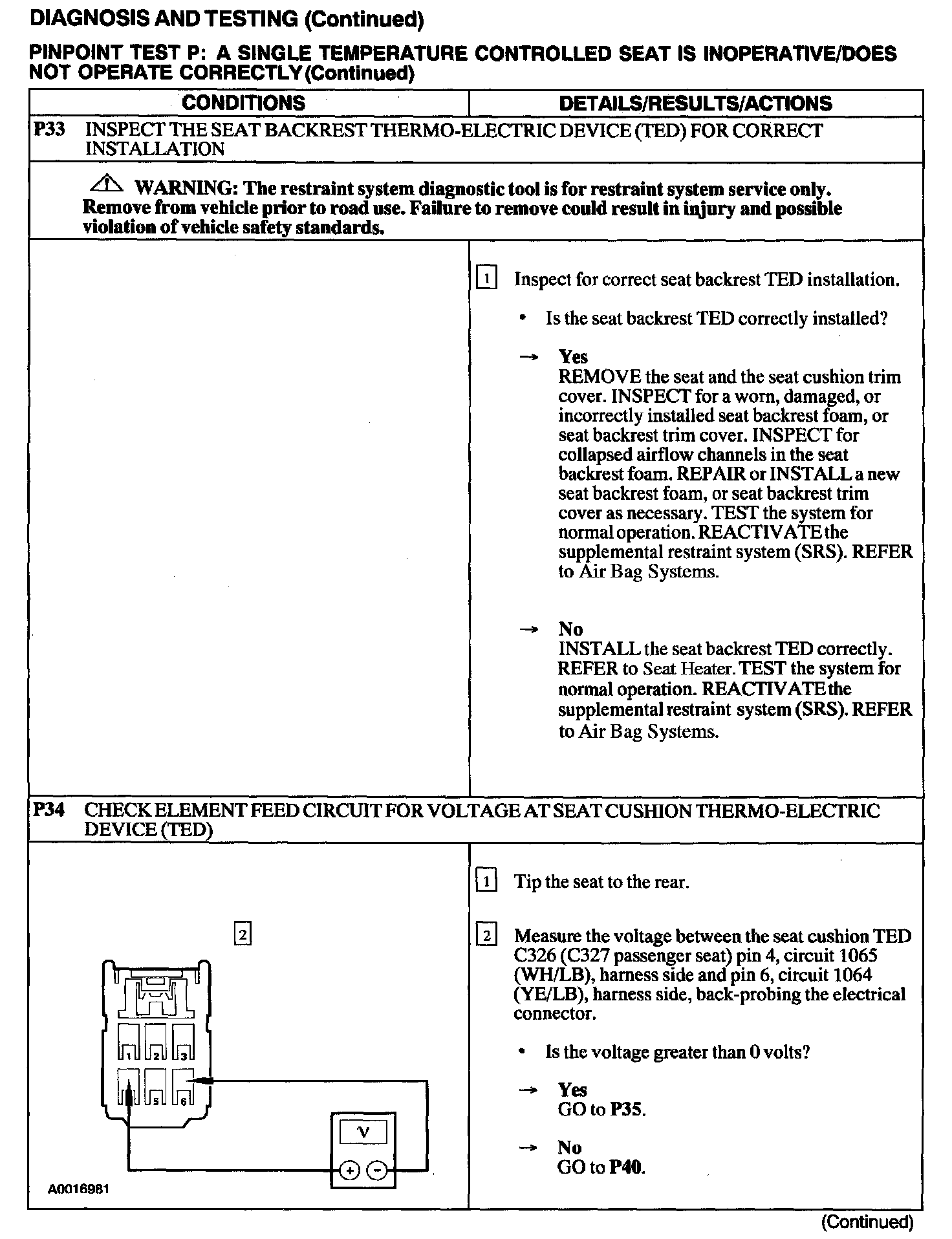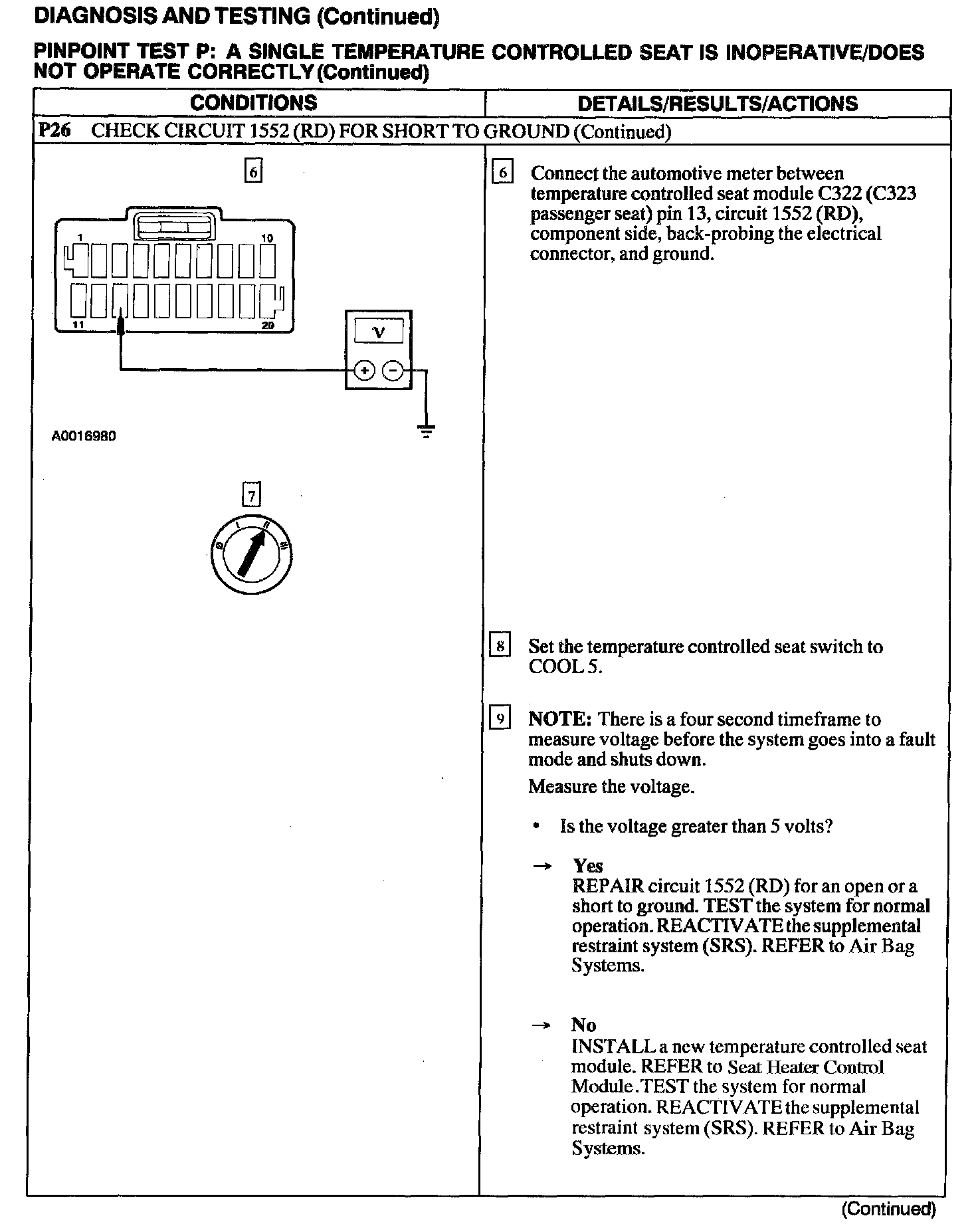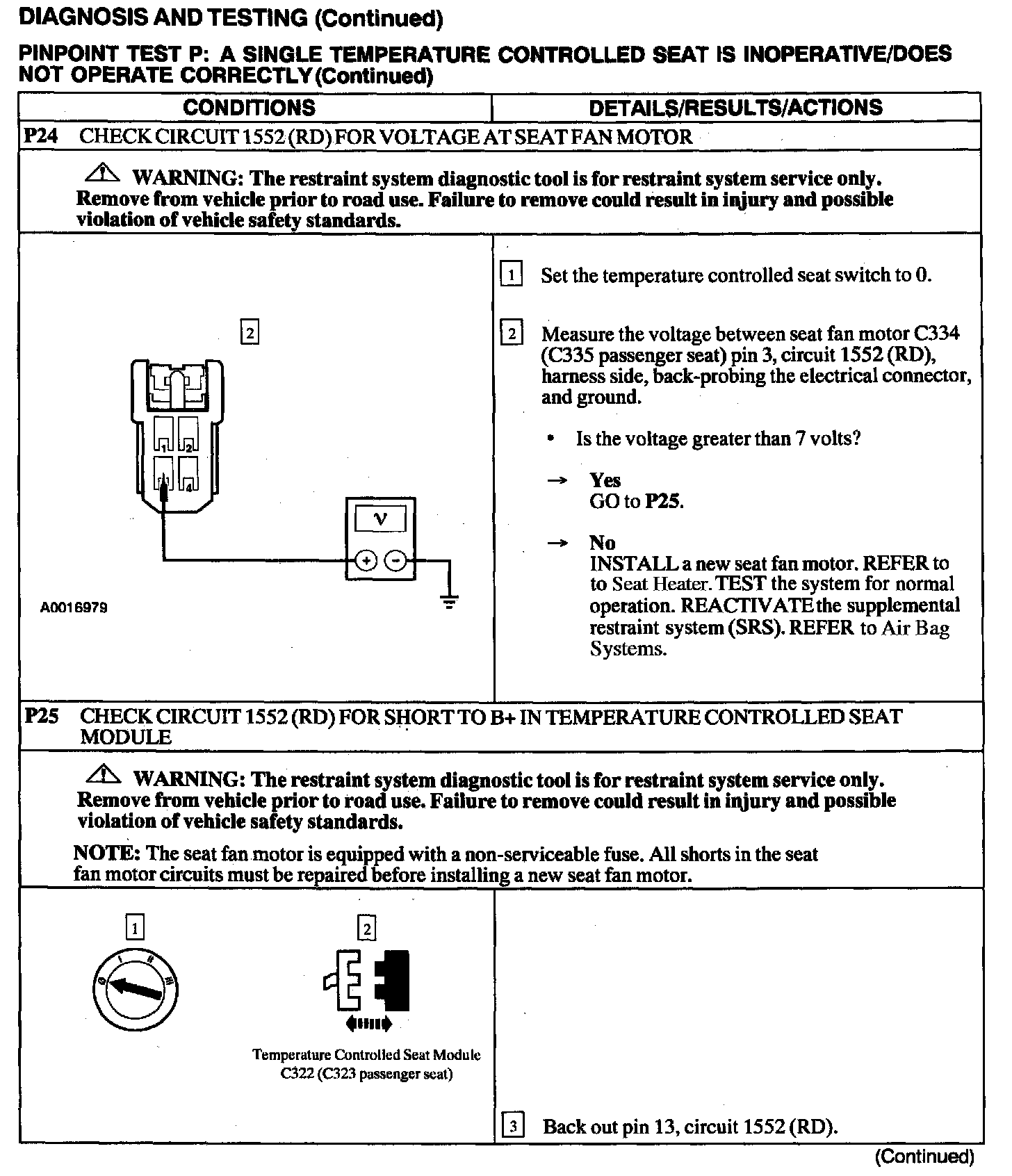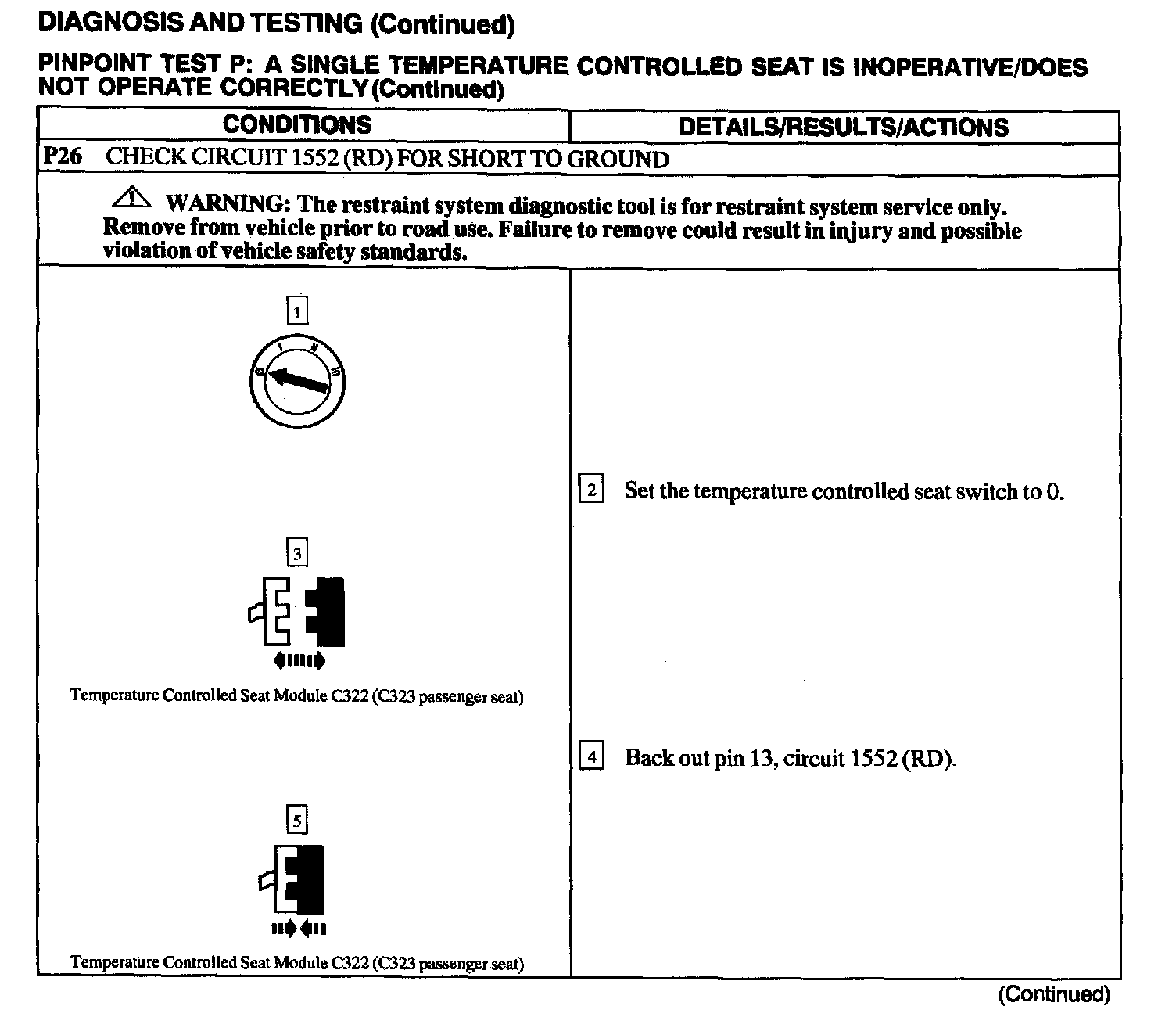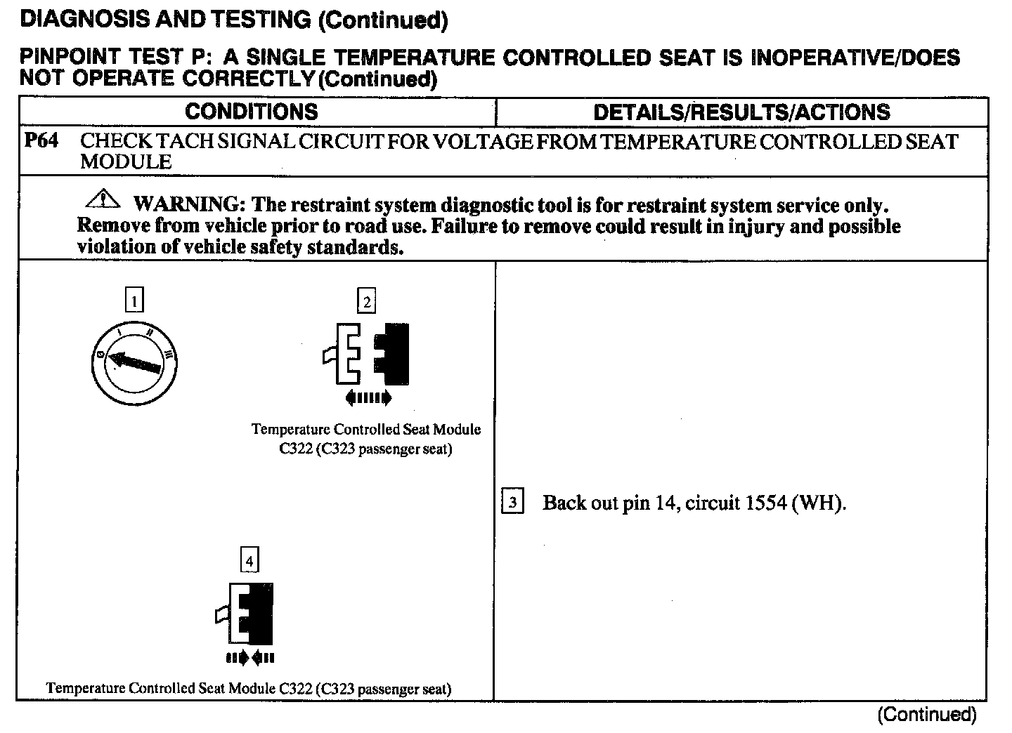 Test P: A Single Temperature Controlled Seat Is Inoperative/Does Not Operate Correctly